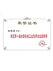 • 榮獲第八屆全國機械工業(yè)優(yōu)秀企業(yè)家稱號