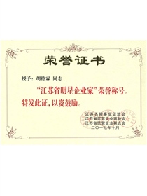 • 江蘇省優(yōu)秀企業(yè)家(獎狀)