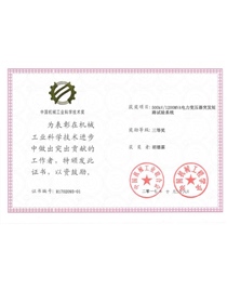 • 中國機械工業(yè)科學(xué)技術(shù)獎證書-科技進步獎三等獎