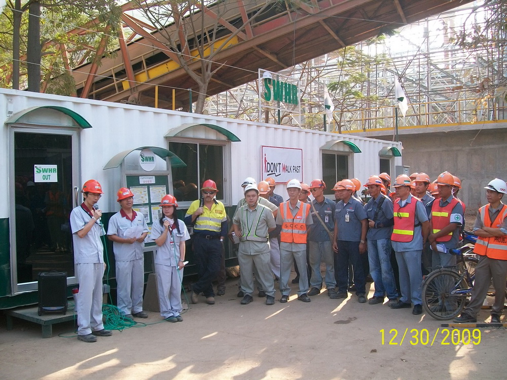 Mr. Philip was accompanied by Project Manager Mr. Prapan, Site Consulter Mr. Bill, Safety Consulter Mr. Guy, Safety Team Leader Mr.Sumrit, Project Manager of Sinoma EC Mr.Hou YaoGuang and Site Manager of Sinoma EC Mr.Jiang XiangDong.